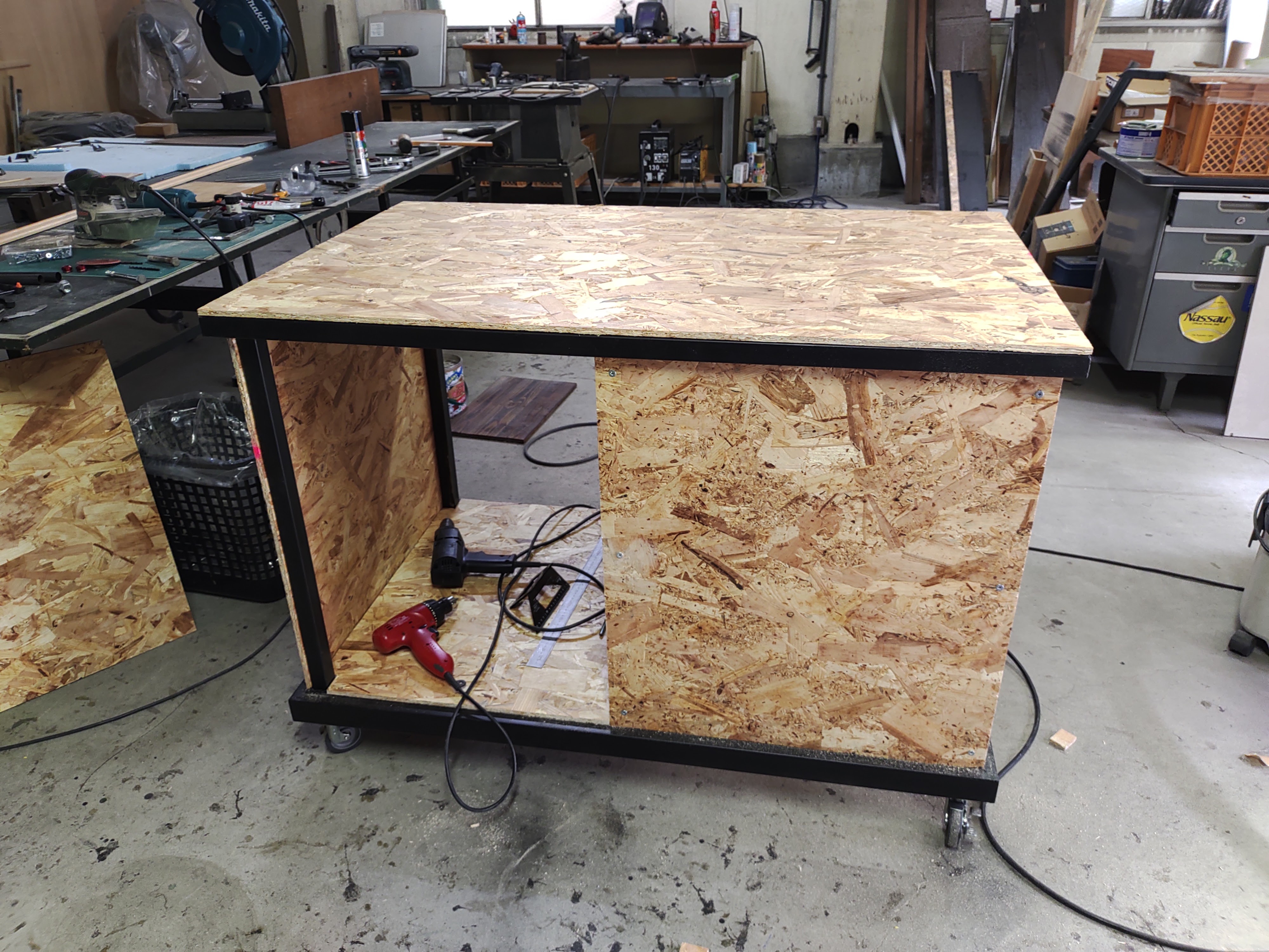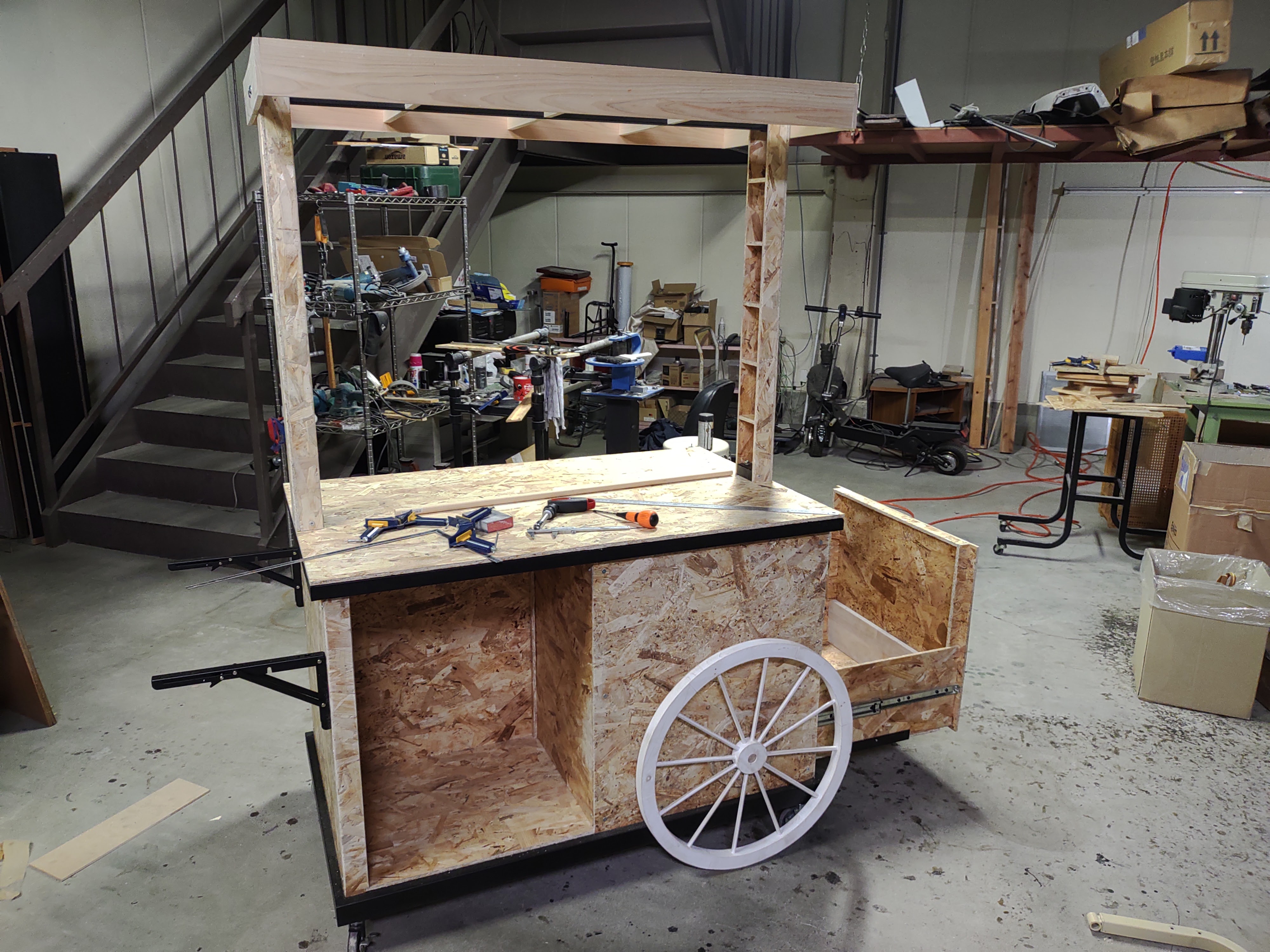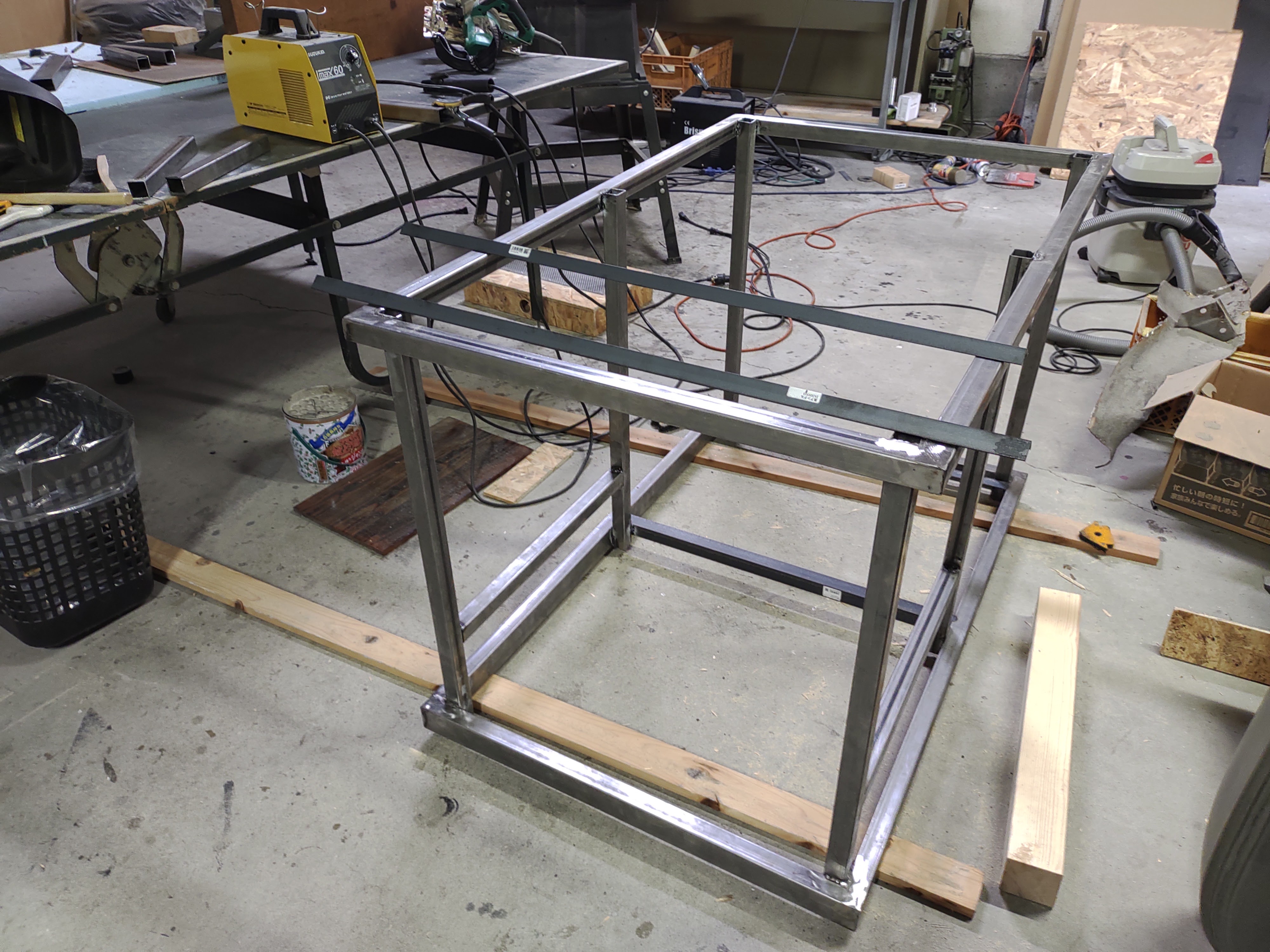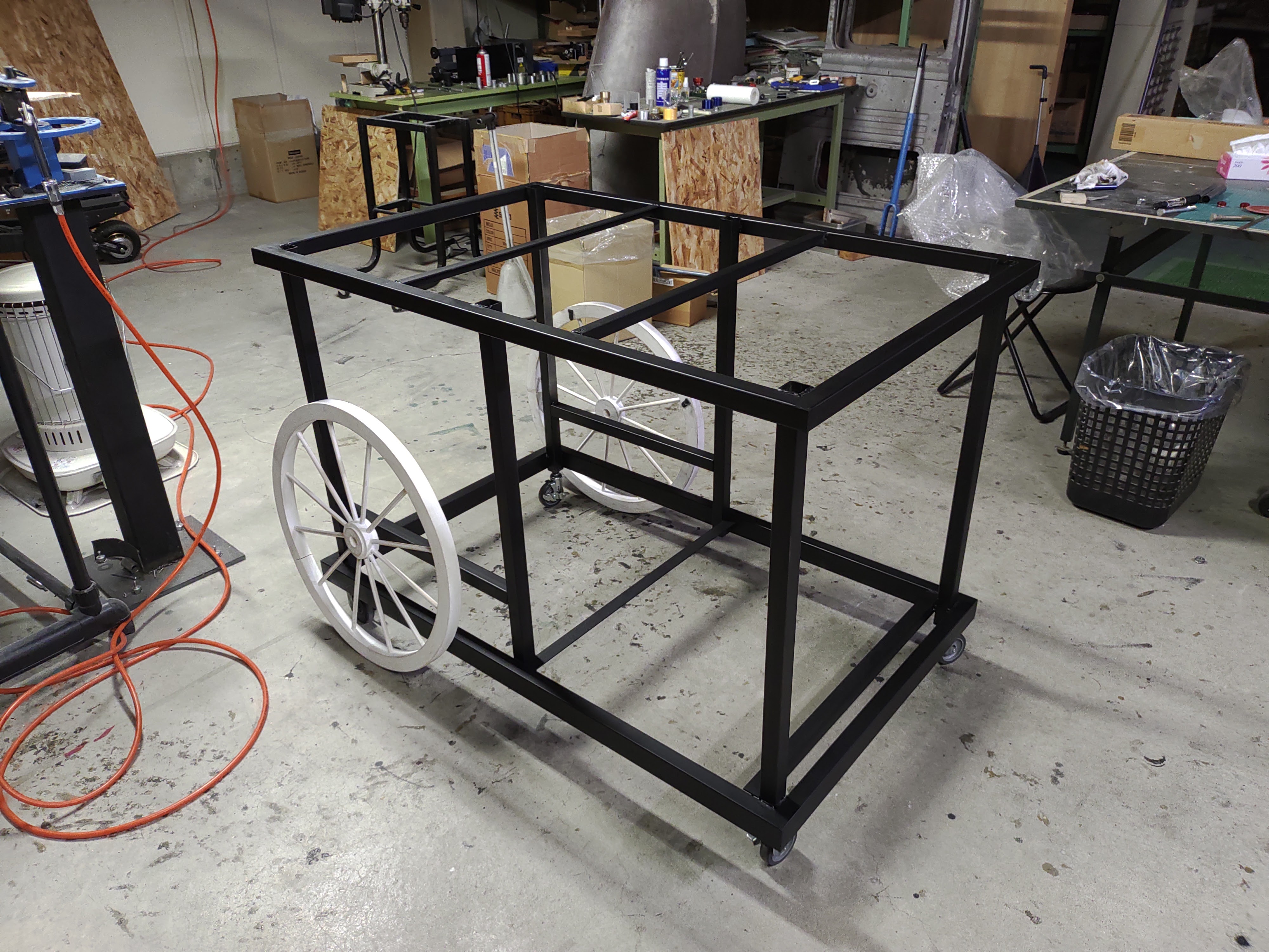 出張販売に使いたいという事でしたので移動にも耐えられる剛性を確保する必要がありました。角パイプを溶接してフレームを製作しました。