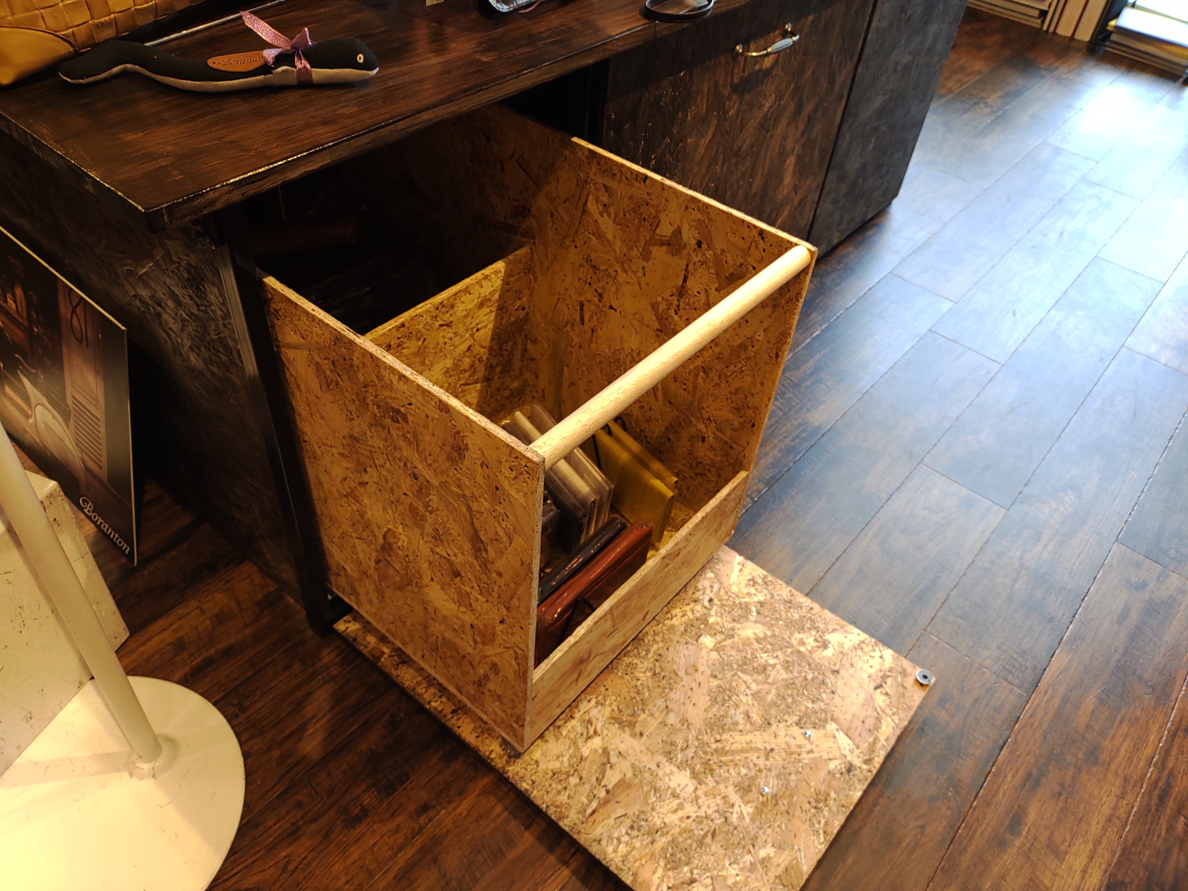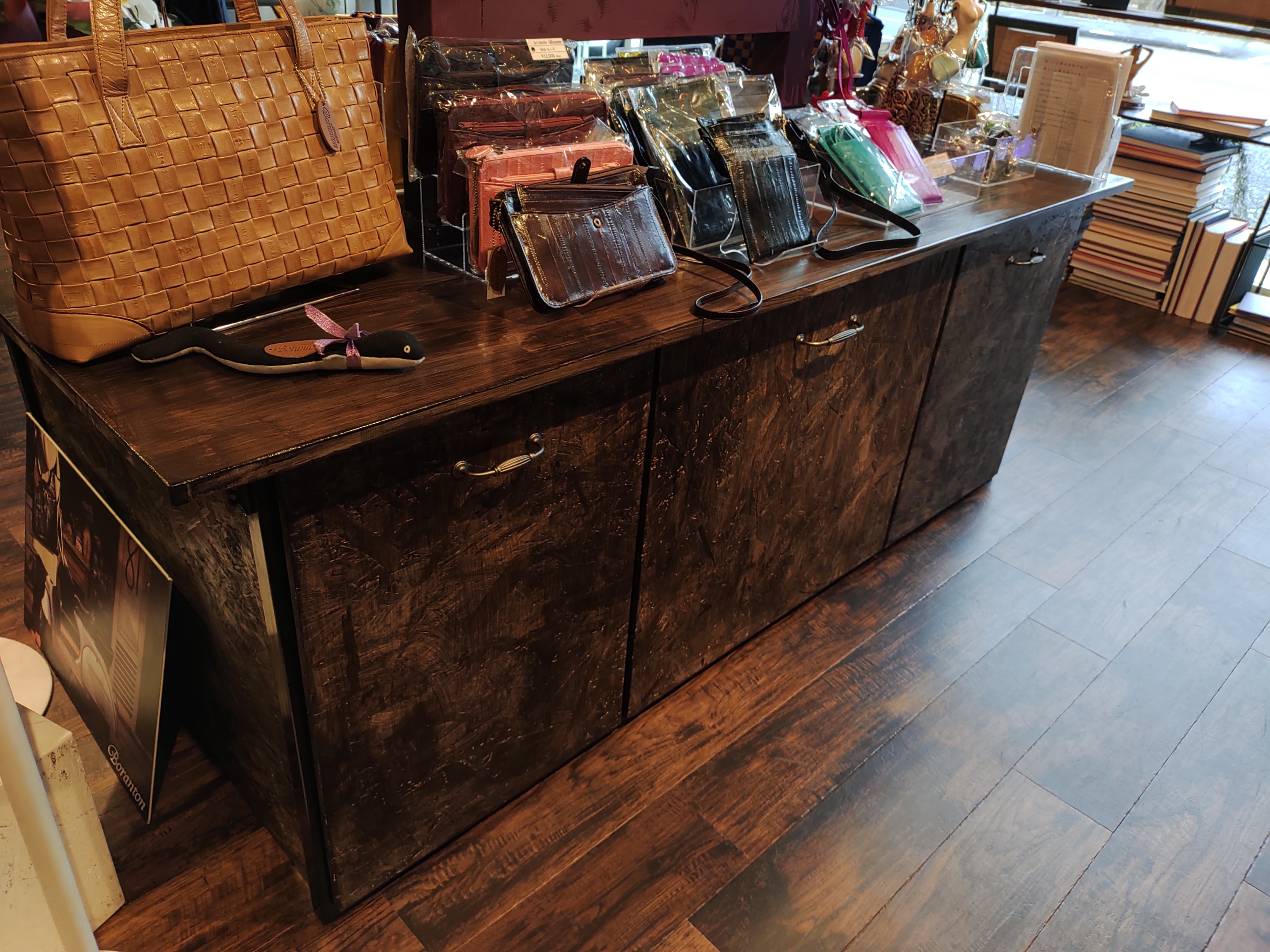 収納スペース付きの展示什器をお願いされましたので製作しました。天板は182センチ×92センチ!さぶろく板の集成材をそのまま使ってます。