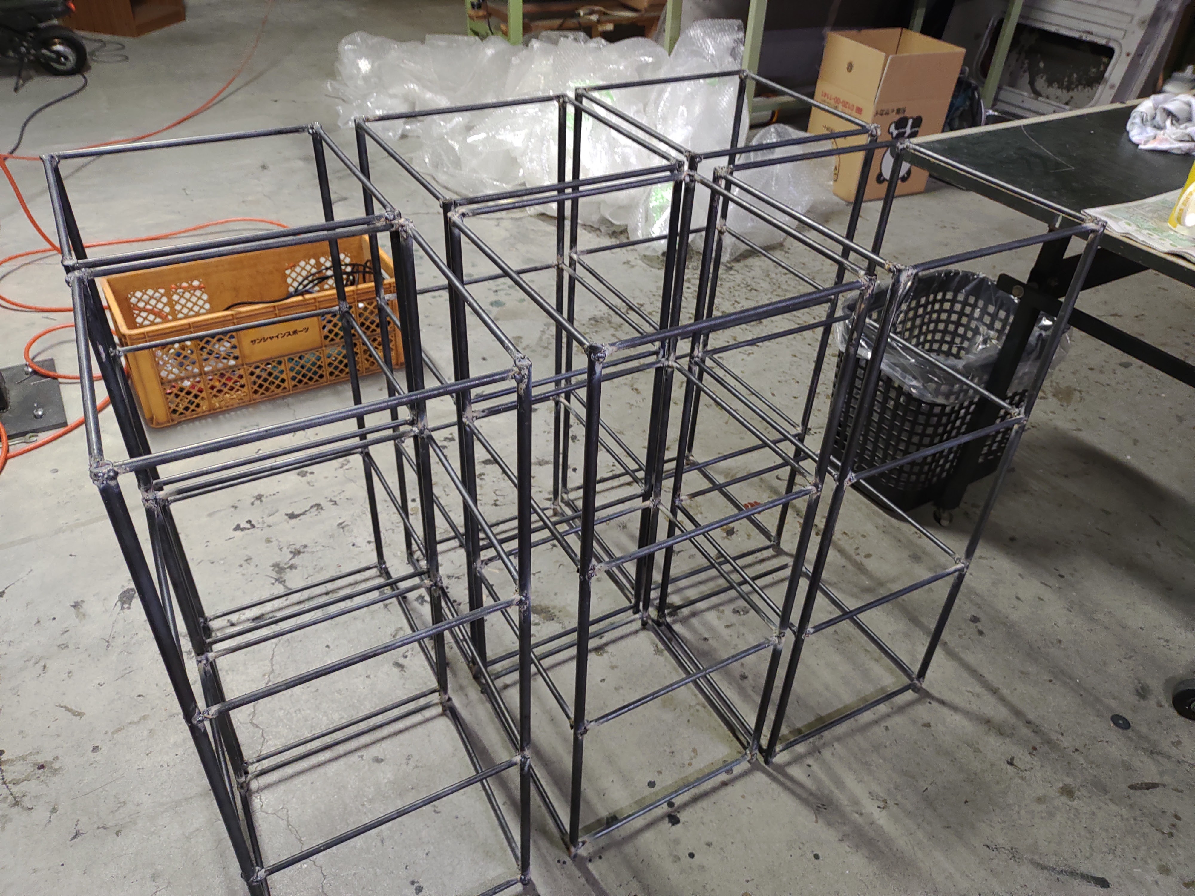 床から天井までは約2m80cmとなりますので、3段のトラスを3台製作し、ボルトで連結して1組とします。