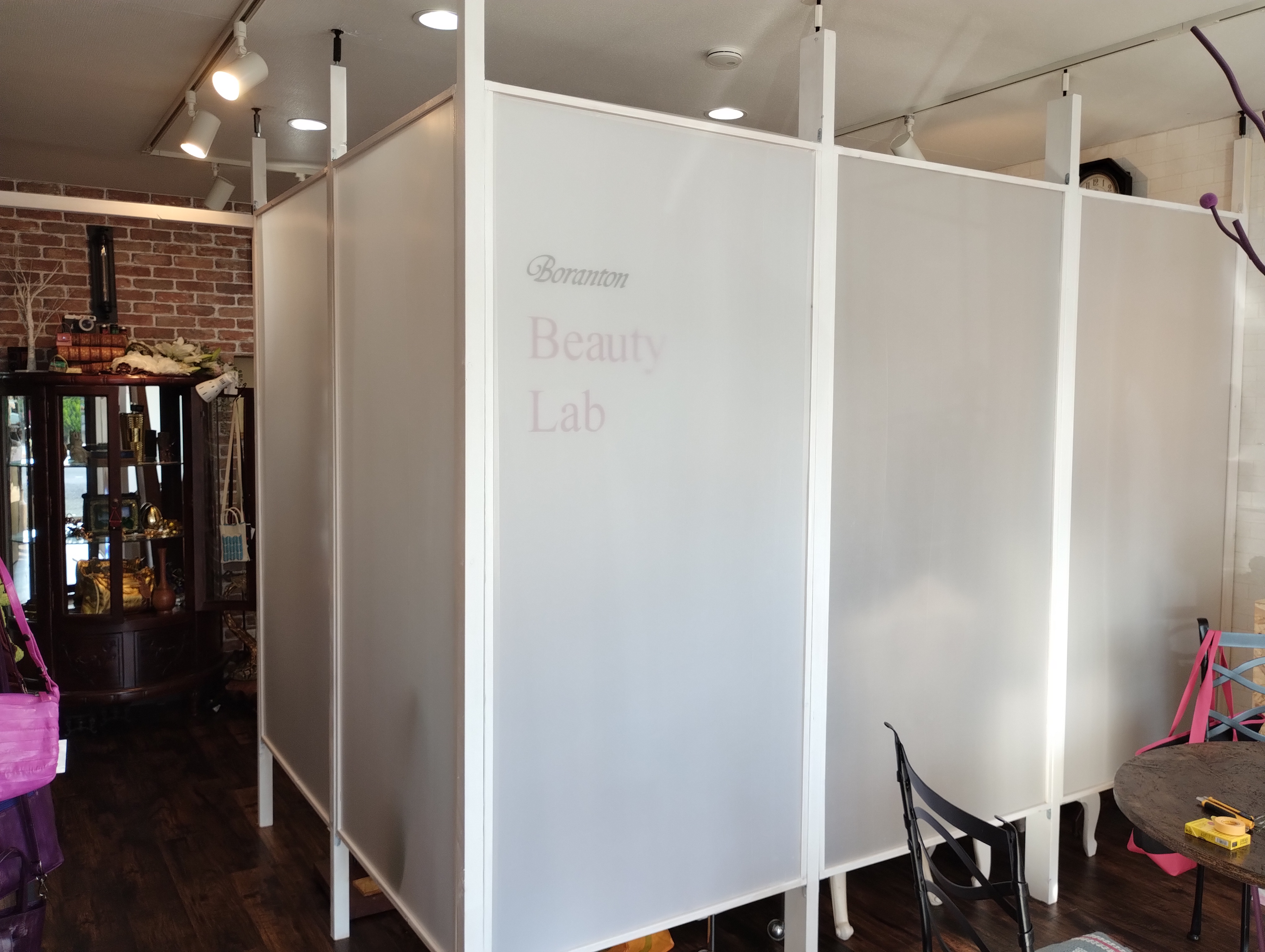 パーテーションを夜間ライトアップし、店舗外から目立つようにすることが目的です。