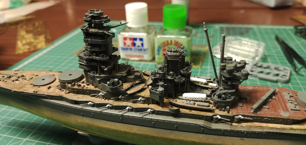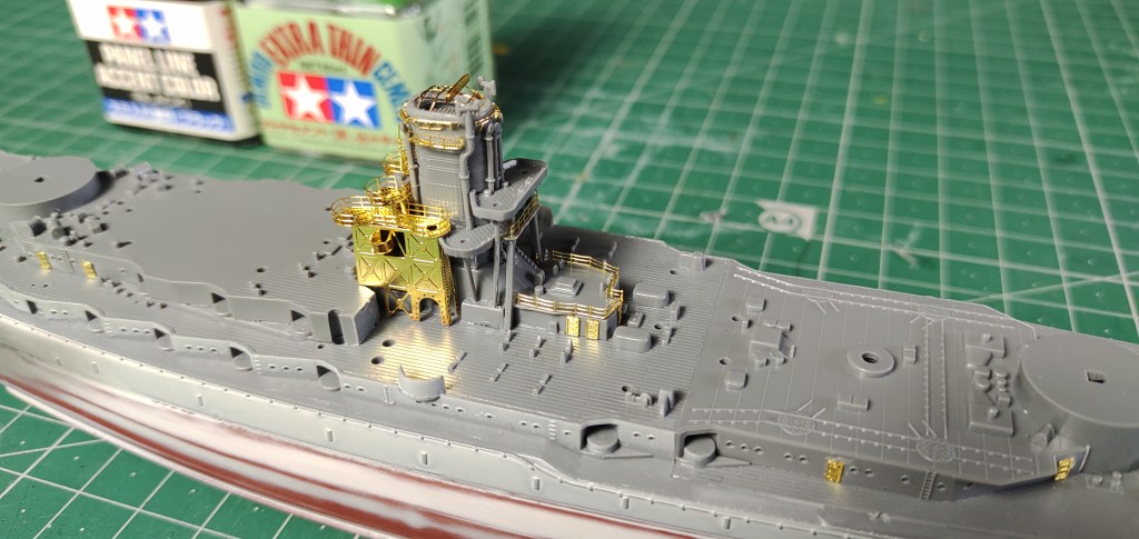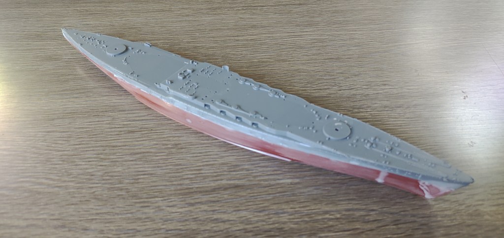 ミスターカラーの呉海軍工廠色を塗装。甲板とリノリウム甲板色を筆塗しました。