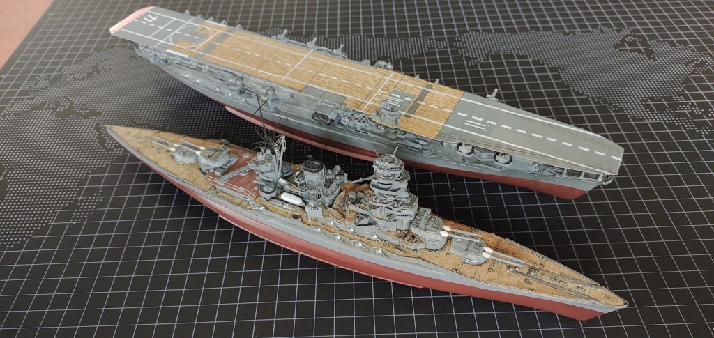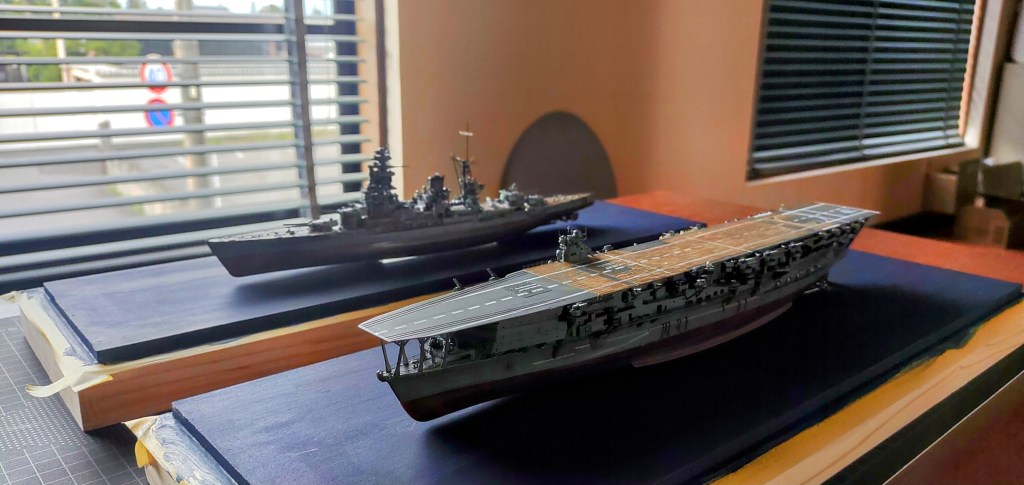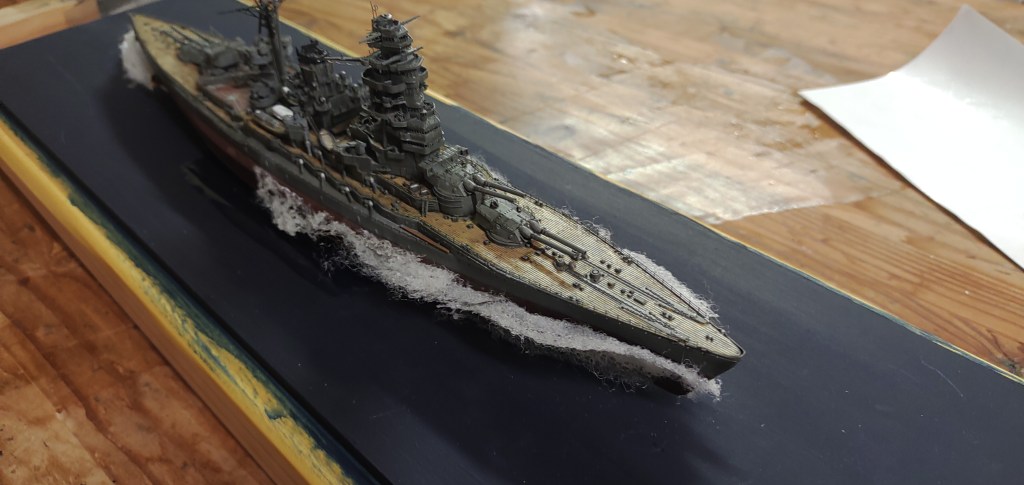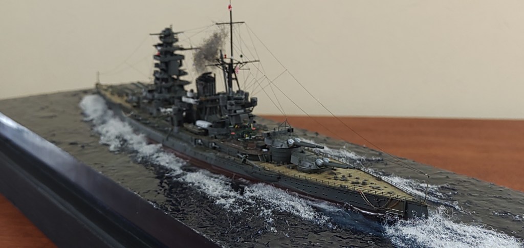 戦艦長門、航空母艦加賀を同時進行で製作しました。どちらのキットともフジミ社1/700を使用しました。そして、海面にはレジンを使用しました。