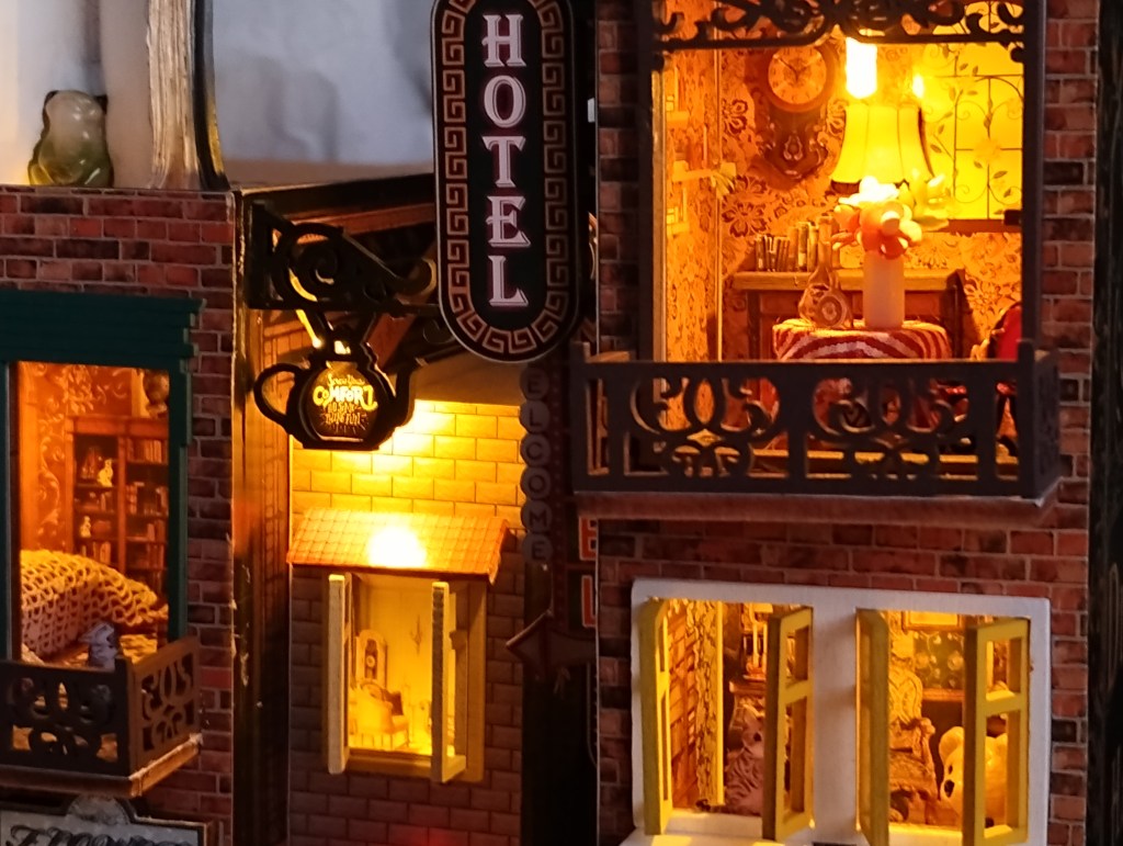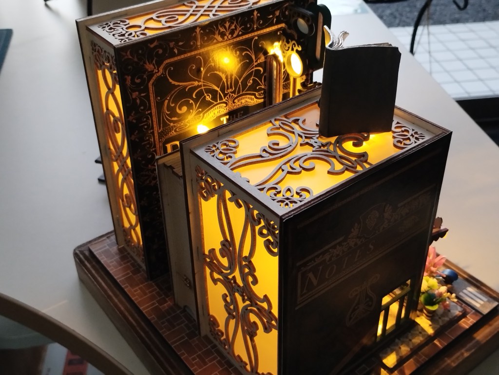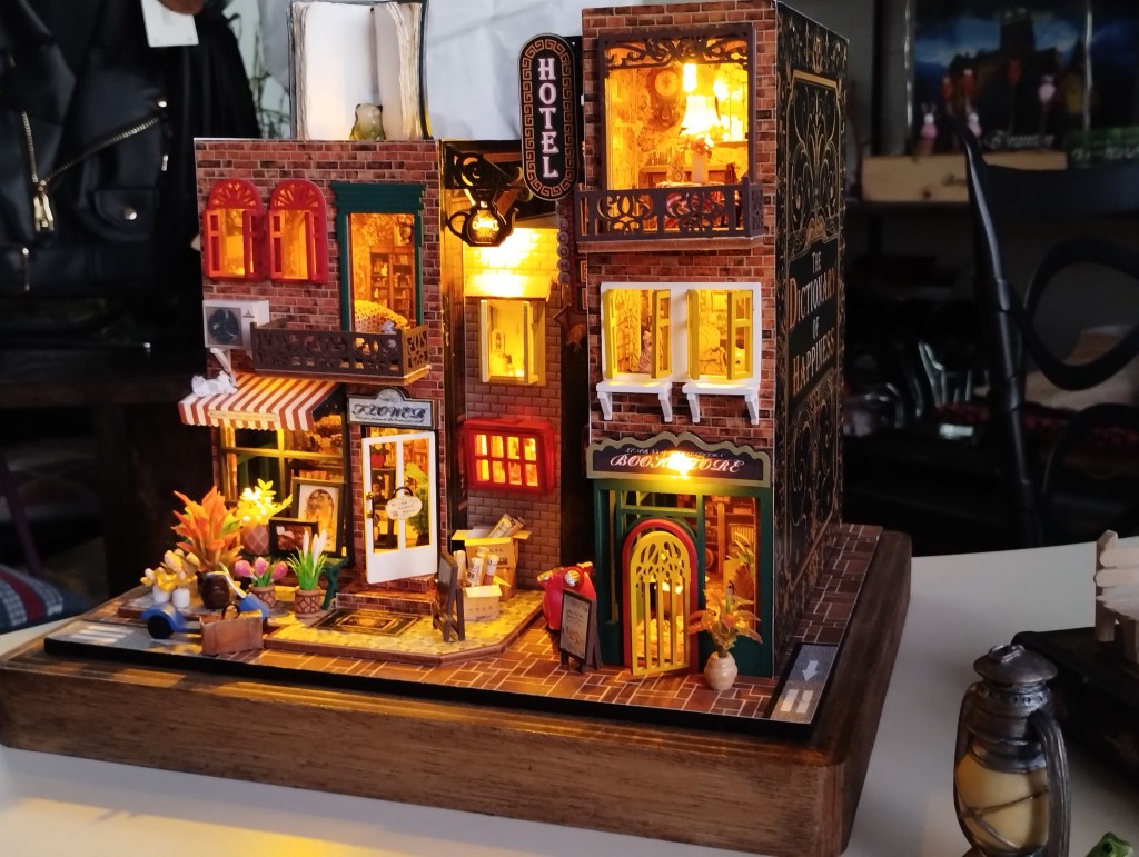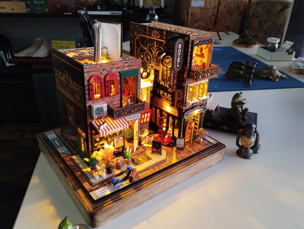 今回製作したのはアマゾンなどで販売されているキット商品です。本を模った建物に可愛いお店が何軒か軒を連ねるデザイン