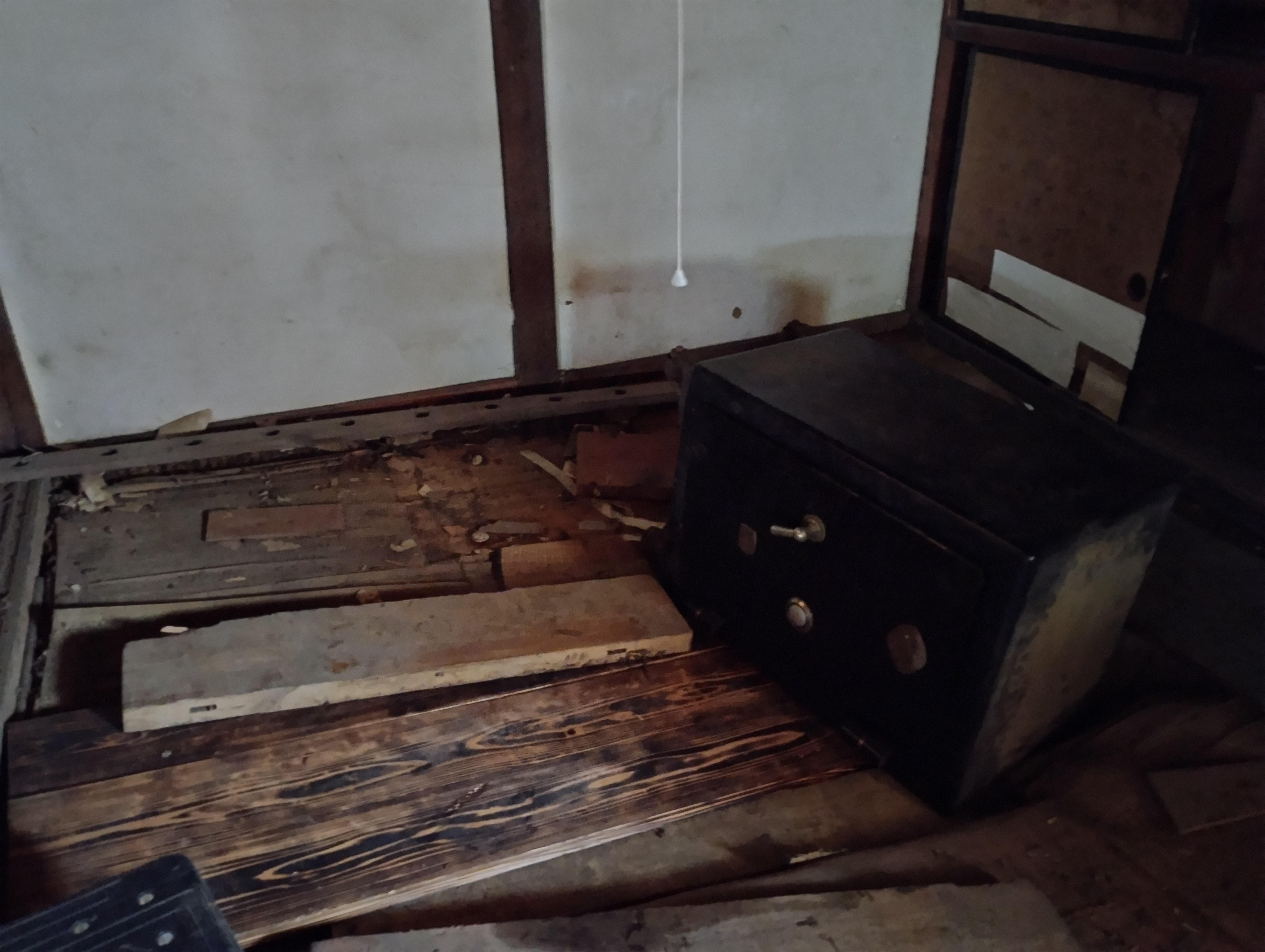 金庫の部屋は応援部隊が来るまで手を付けれませんので、まずは隣の部屋の床板を外してみました。